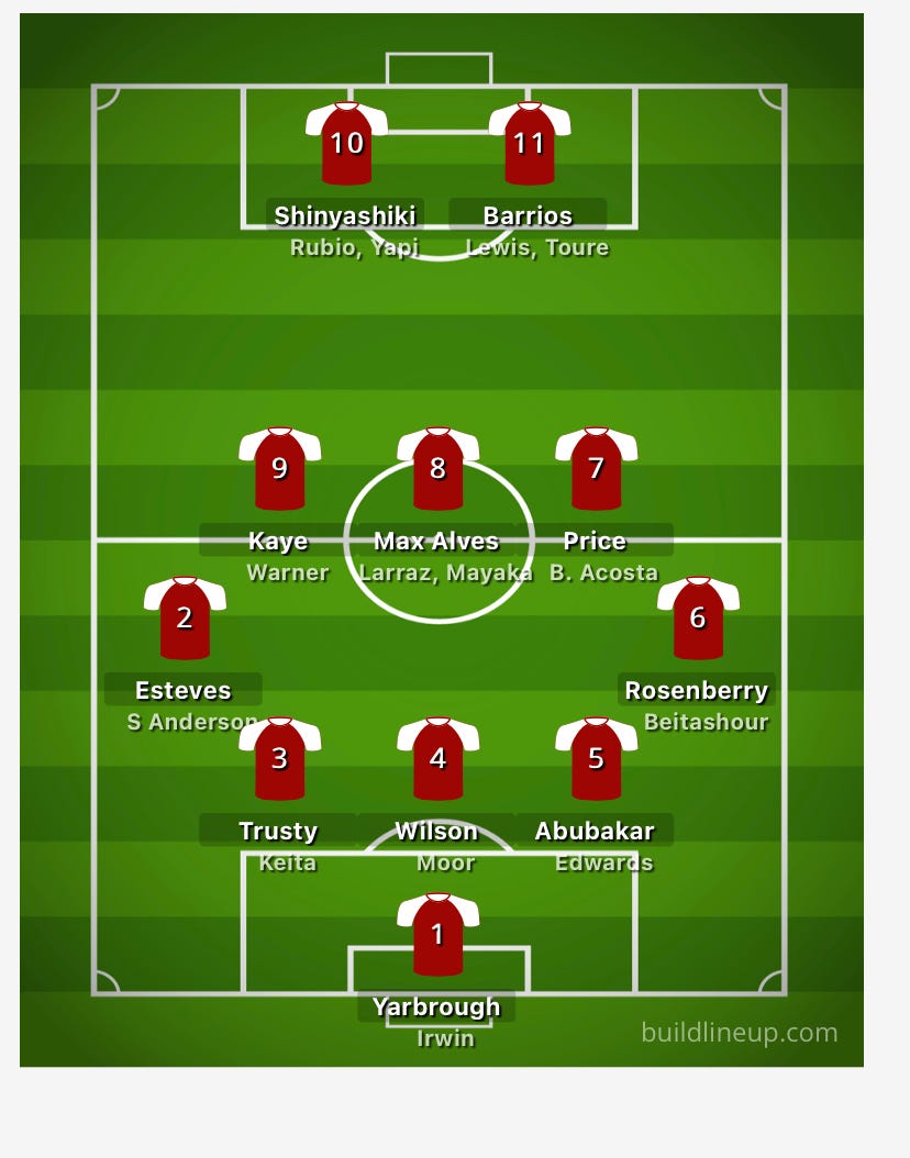 Of course, up above, I filled out the buildlineup.com template for a 3-5-2. That’s because I believe Brazilian signing Max Alves is supposed to start, and if he’s starting, it has to be alongside Price and Kaye - neither of those guys is sitting. That means the formation will likely change a little.