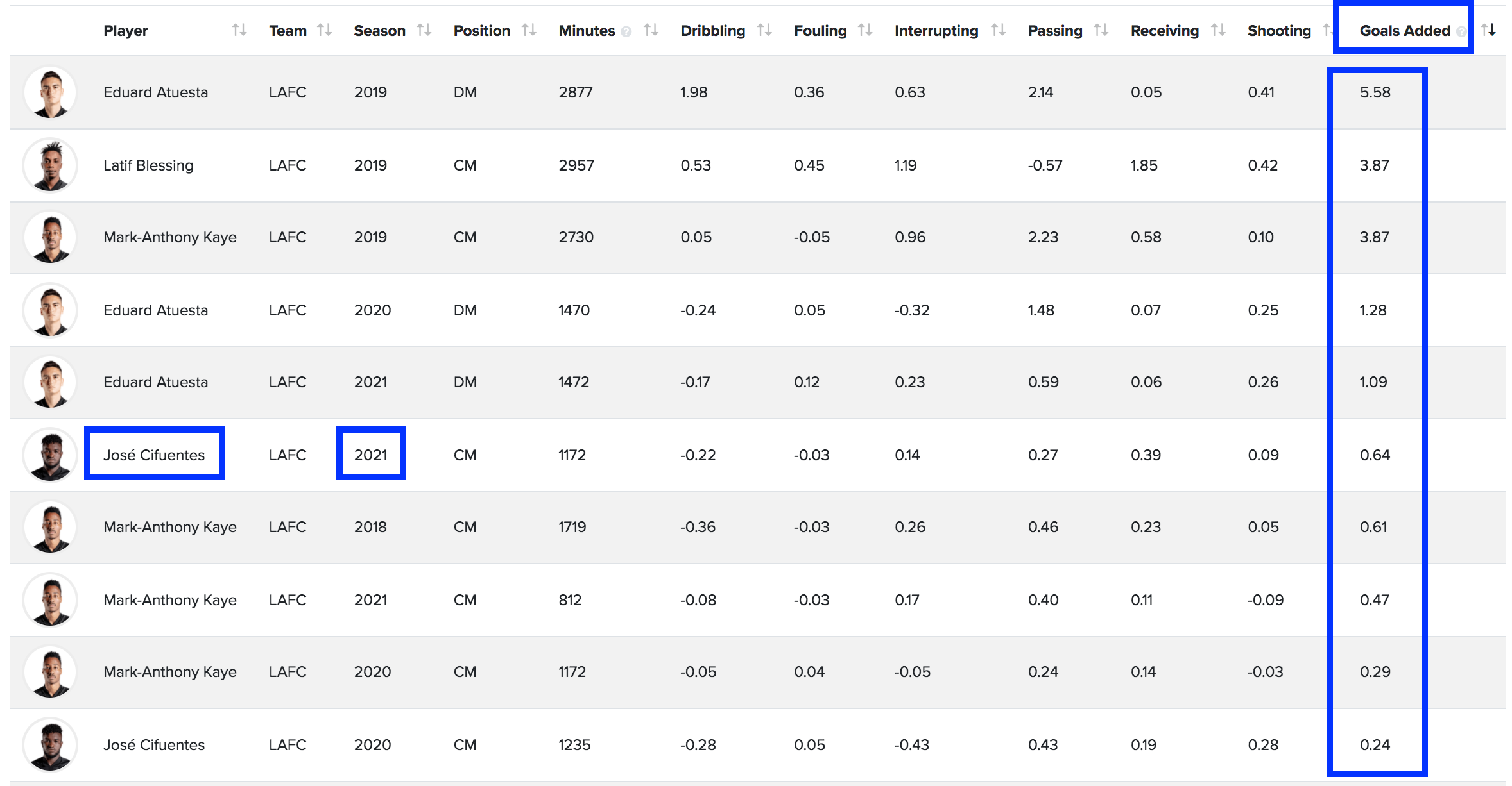 Kaye had an exceptional 2019 year - but then again, all of LAFC had an exceptional year. They won Supporters Shield with 72 points - a record-setting number - but were disappointed to lose in the Western Conference final to Seattle Sounders. Carlos Vela was MVP, scoring an outrageous 38 goals in 36 matches. Eduard Atuesta led the midfield with 5.58 G+, and midfield harasser-dribbler Latif Blessif had a 3.87 G+, same as Kaye. The 2019 team pressed well, cut passing lanes extremely well, and moved the ball extremely quickly and accurately. Kaye was often a primary ‘lane-jumper’, or perhaps in the words of the dearly departed Charlie Murphy, a habitual line-stepper.
