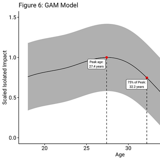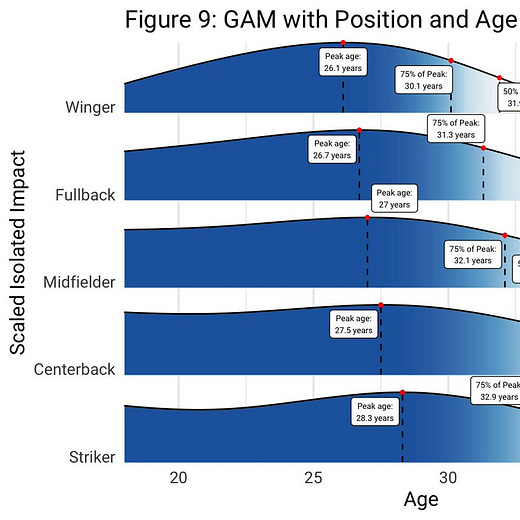 Strikers retain more like 90-95 percent of their effectiveness at age 30.