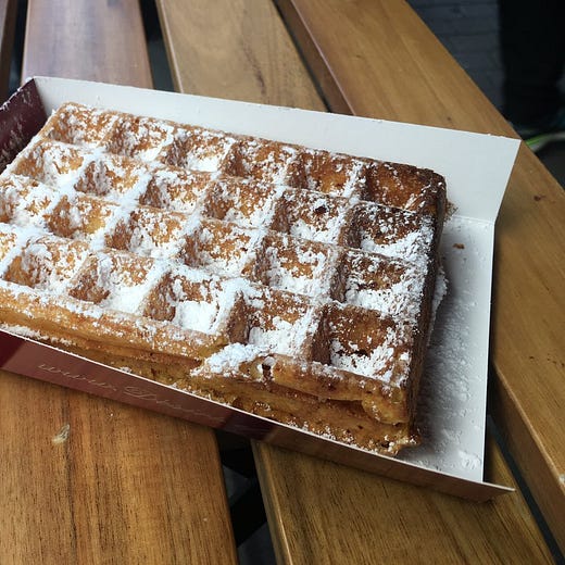 I saved the best part for last. In either country, the waffles, cheese, and fries are going to be amazing. Belgian waffles are closer to the waffles we eat in America. Dutch waffles can be a little firmer and variations like the Stroopwafel are amazing but a different food. The Netherlands has chippies just like England if you want street food. The Belgian mayonnaise was my favorite of the condiments.