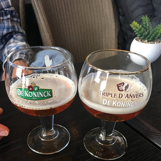 I liked all the Grimbergen beers I had. The blonde was my favorite. Antwerp’s famous for De Koninck. Their signature beer is a dark pale ale called Bolleke, which directly translates to “small ball.” The name comes from the shape of the glass it is served in, a bowl or pint-sized goblet. Just say “bolleke” when you order at the bar. You’ll get instant street cred with the locals. Out of Bruges, there’s Half Moon which has a wider spectrum of beers. They’re world famous for having a two-mile beer pipeline (in Bruges, not Antwerp). Lastly, there’s Elixir d'Anvers, or “liquor of Antwerp.” My dad thought it tasted like all-purpose cleaner. It tasted ok to me. If you’re looking to get sea level hammered for the RAFC match, Elixir d'Anvers will do it.