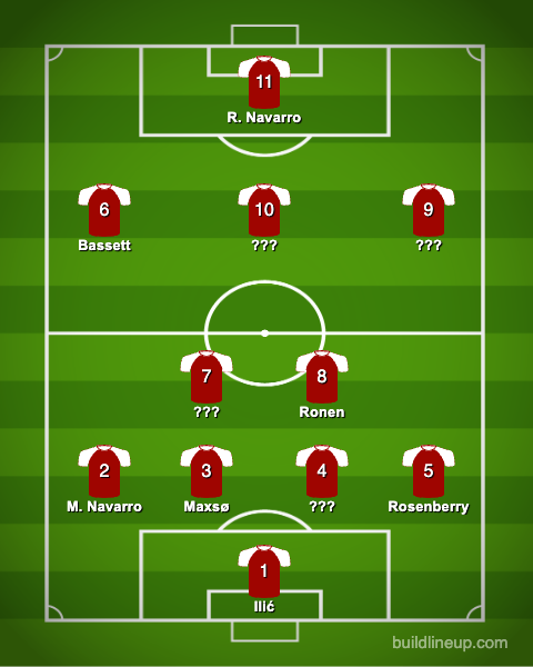 I used a 4-2-3-1 because, as Seeing Red podcast supporter reporter Mark Fishkin told us on the pod a few weeks back, that’s what Chris Armas does.