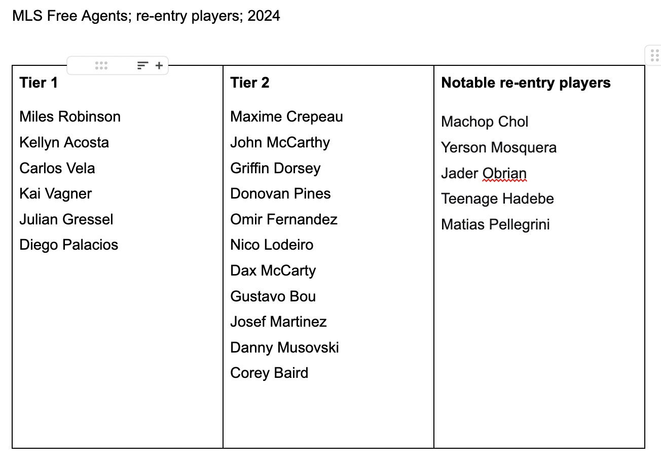 One correction: I made the list before Jader Obrian was acquired by Austin in Stage 1 of the 2023 Re-entry draft, so he’s off the board. If you understand how the re-entry draft works, then congratulations, you are probably overqualified to be an MLS GM.
